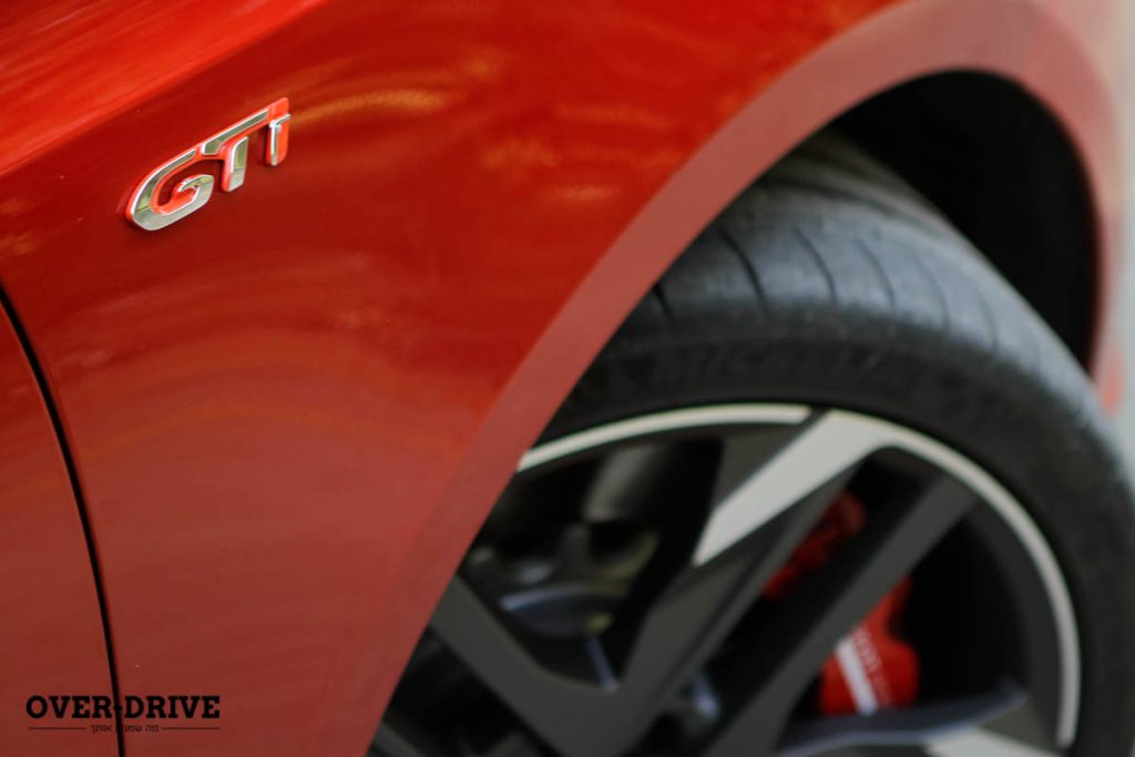 הכניסה לתא הנוסעים מגלה עוד עיטורי GTI ותפרים אדומים שמזכירים לך במה אתה נוהג. יש גם שני כיסאות ספורטיביים רבי תמיכה ויפיפיים. פחות אהבתי את צמצום המתגים ודחיסתם למסך אחד. זה רעיון טוב על הנייר ונראה מצוין, אבל לתפעל מערכת מגע תוך כדי נהיגה הוא לא פתרון נוח מבחינתי, בשום רכב. אני גם לא אוהב את גלגל ההגה הקטן. אולי לאנשים דלי מידות הוא מתאים עבורי הוא מרגיש קטן מדי. למדרס שמאל, שנוטה בזווית קלה לכיוון הדוושות, גם לא התחברתי כל-כך ומחט הסל"ד שנעה לכיוון הפוך מהמקובל דורשת הסתגלות (שתארך כנראה יותר מכמה ימי מבחן).