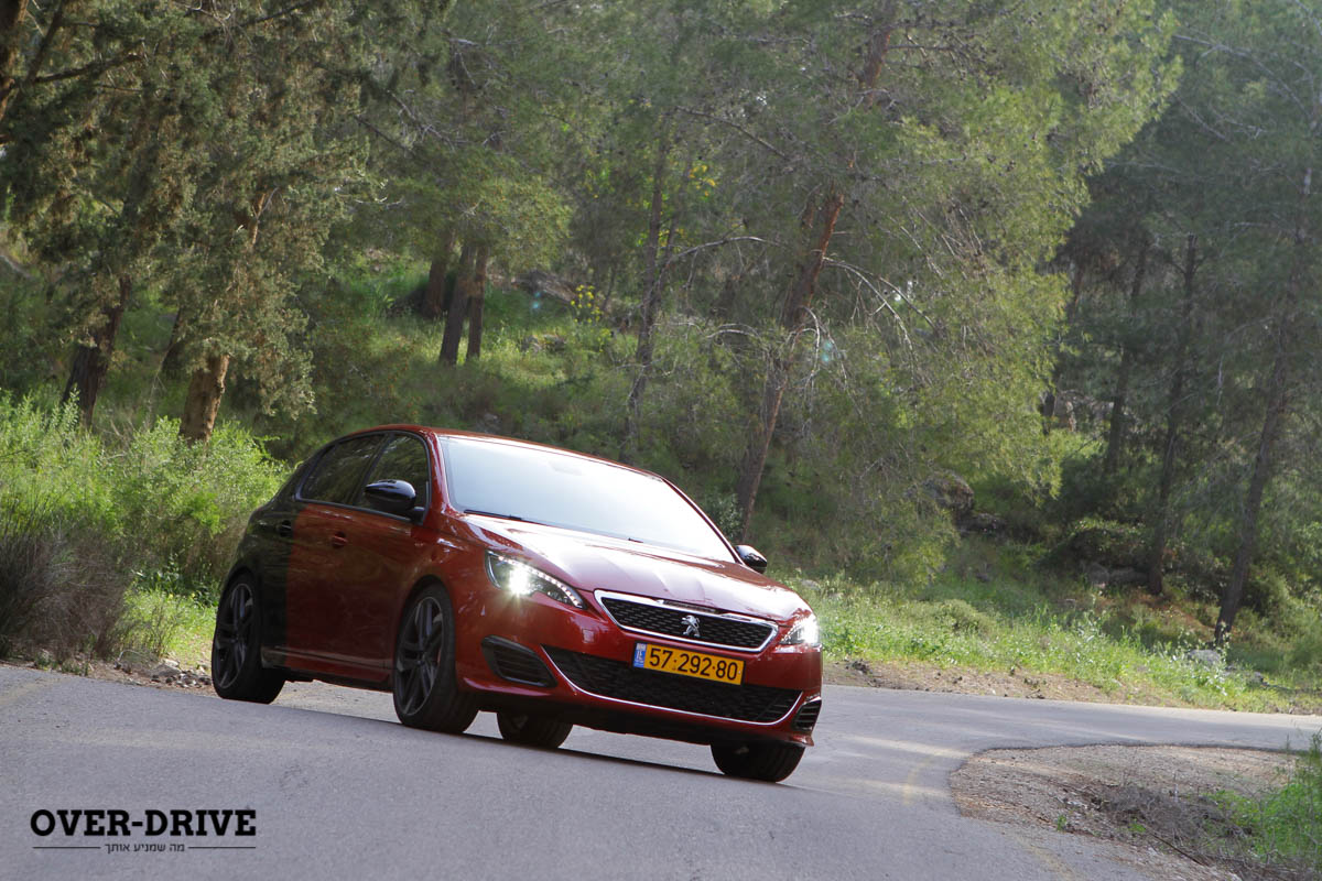 על כביש מפותל, מהיר וחלק (מי אמר סדום-ערד?) פיג'ו 308GTI הייתה רגועה יותר, כאן היא פשוט נכנסה לפניות מהר עם טרן-אין שהמשיך להפתיע אותי, ייצרה המון אחיזה ויציבות בשיא הפניה וירתה את עצמה לעבר הפנייה הבאה. לבלמים אין שום בעיה לטפל בעומס ובמהירות, תגובות השלדה טובות ורק ההגה מרגיש מלאכותי למרות שהוא מדויק. גם מיקום הדוושות לא אידאלי לשימוש עקב לצד אגודל, שדי הכרחי במכונית ידנית בקצב כזה.