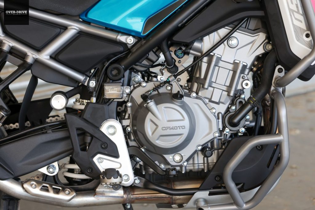 המנוע של CF מוטו 450MT שהוא מפיתוח עצמי ואמנם בתצורת טווין מקבילי פופולארית, אך הוא בעל סידור של 270 מעלות בין פיני הטלטלים, לא אופייני לאופנועים בנפח זה. הוא מחלץ מנפח של 449 סמ"ק 42 כ"ס ב-8,500 סל"ד ומומנט של 4.5 קג"מ ב-6,250 סל"ד עם משקל כללי יבש של 175 ק"ג. מצמד מחליק הוא ציוד סטנדרטי כמו גם מערכת ABS עם מצב שטח המנתק את הפעולה על הגלגל האחורי ומערכת בקרת משיכה בעלת מספר מצבי פעולה כולל ניתוק מלא.