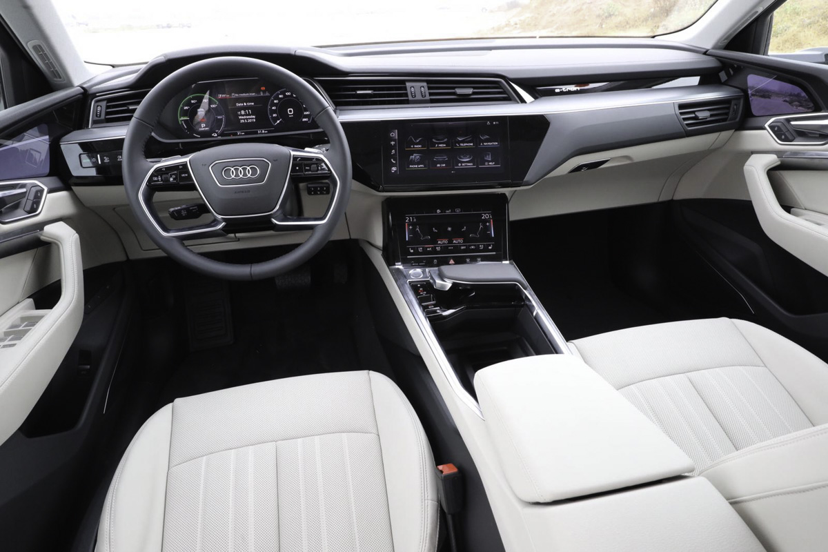 אחרי שסיימת לשחק עם דלת הטעינה הנפתחת חשמלית, בחנת את תא המטען הקדמי הקטן – אין כאן מנוע מסורתי הרי, קלטת את חישוקי הענק (21 אינץ' בפרימיום) ואת "המראות" העתידניות, אפשר להיכנס פנימה. אודי בנתה לעצמה שם של חברה שיודע לחבר תא נוסעים איכותי ומרשים והאי-טרון לא יוצא דופן.