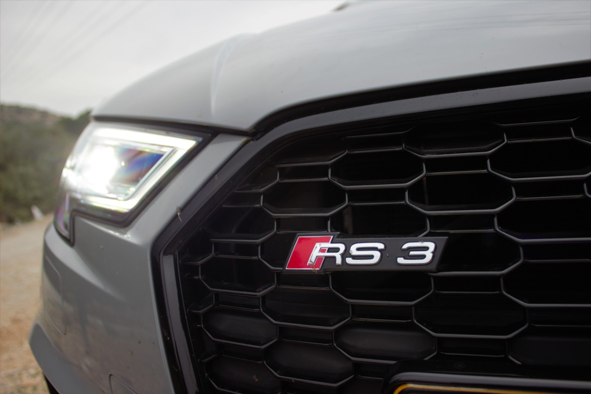 עוד לפני שאני בכלל מקבל את המפתחות 2 דברים בולטים מיד לעין – המרכב והצבע. אם עד היום גרסאות הקצה של המשפחתית הקומפקטית של אודי הגיעו בגרסאות האצ׳בק (3 דלתות) בדור הראשון וספורטבק (5 דלתות) בדור השני, מעתה אפשר לבחור גם בגרסת סדאן. גרסה זאת ארוכה ב-14.4 ס״מ, נמוכה ב-0.2 ס״מ וכבדה ב-5 ק״ג מאחותה מחומשת הדלתות. זה לפחות על הנייר כשבפועל תוספת הישבן מקנה לה פרופיל הרבה יותר נמוך וקרבי. חוץ מהמרכב, הצבע אתו הגיעה ה-RS3 למבחן נקרא ״אפור נארדו״ – שמבליט את עיצוב הרכב ועושה לו רק טוב. ולא היה קשה לראות את זה דרך העיניים של עוברי האורח השונים שנמשכו אליו כמו פרפר לאש.