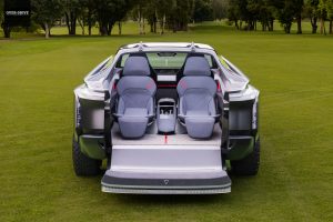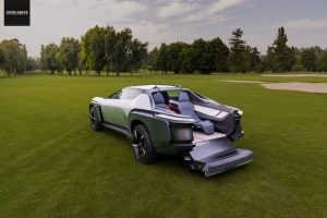 לא מדובר במכונית קונספט חדשה. איטלדיזיין חשפה את הקווינטסנצה לראשונה בתערוכת בייג'ין בשנה שעברה. מדובר בקונספט מרהיב בעיצוב נועז שמשלב אלמנטים של מכונית על כמו שמשה קדמית הנמתחת בזווית חדה ודלתות פרפר, יציבה גבוהה וחיפויי צד מושחרים בסגנון מכוניות קרוסאובר וחלק אחורי מודולארי הניתן לפתיחה ההופך את המכונית למעין טנדר. הורסטיליות של הקונספט ממשיכה כאשר ניתן להפנות את צמד המושבים האחוריים לכיוון הארגז ולקבל מעין מרפסת על גלגלים. נחמד אבל זה לא העיקר כאן.