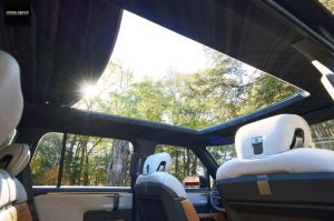 בתא הנוסעים מודרני לחלוטין עם צמד מסכים רוחבי ודומיננטי, גלגל הגה קטום ומראה שהוא רחוק מהמינימליזם הספרטני של המקור. עם זאת ניתן למצוא נגיעות קלאסיות בשורת המתגים המוכספת במרכז לוח המכשירים, בבחירת הצבעי הדיפון ועיצוב המושבים שצועק רטרו ובאפשרות לקבל גג בד מתקפל לאורך המכונית – פיצוי על היעדר מנגנון הסרת גג ודלתות כמו בסקאוט המקורי.