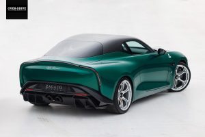 כמובן שהעבודה העיקרית של זגאטו היא על המרכב עצמו. מכונית הסדאן בעלת ארבעת הדלתות קוצרה כאמור, וקיבלה עיצוב קופה חדש לחלוטין, כזה שאינו מסגיר את המקור. הפנסים החדשים מגיעים מהטונאלה דרך אגב כשהעיצוב החזית אמור להתייחס ל-SZ30, "המפלצת", האייקונית. היא עצמה דרך אגב, התבססה על שלדת ה-75, וכמו אז גם היום אנחנו מוצאים את עצמנו נרגשים נוכח השילוב. גם חלקי הגג השחורים ד"א יכולים להזכיר את אותה SZ.