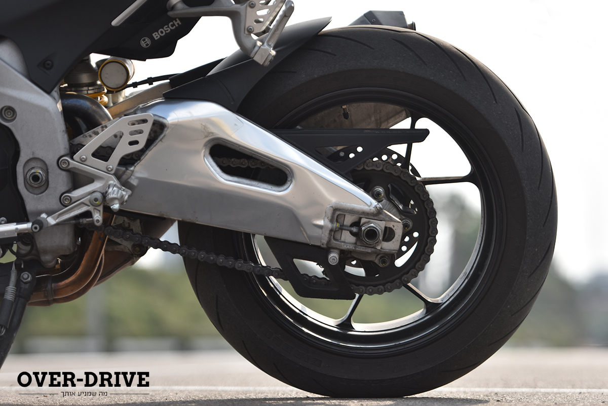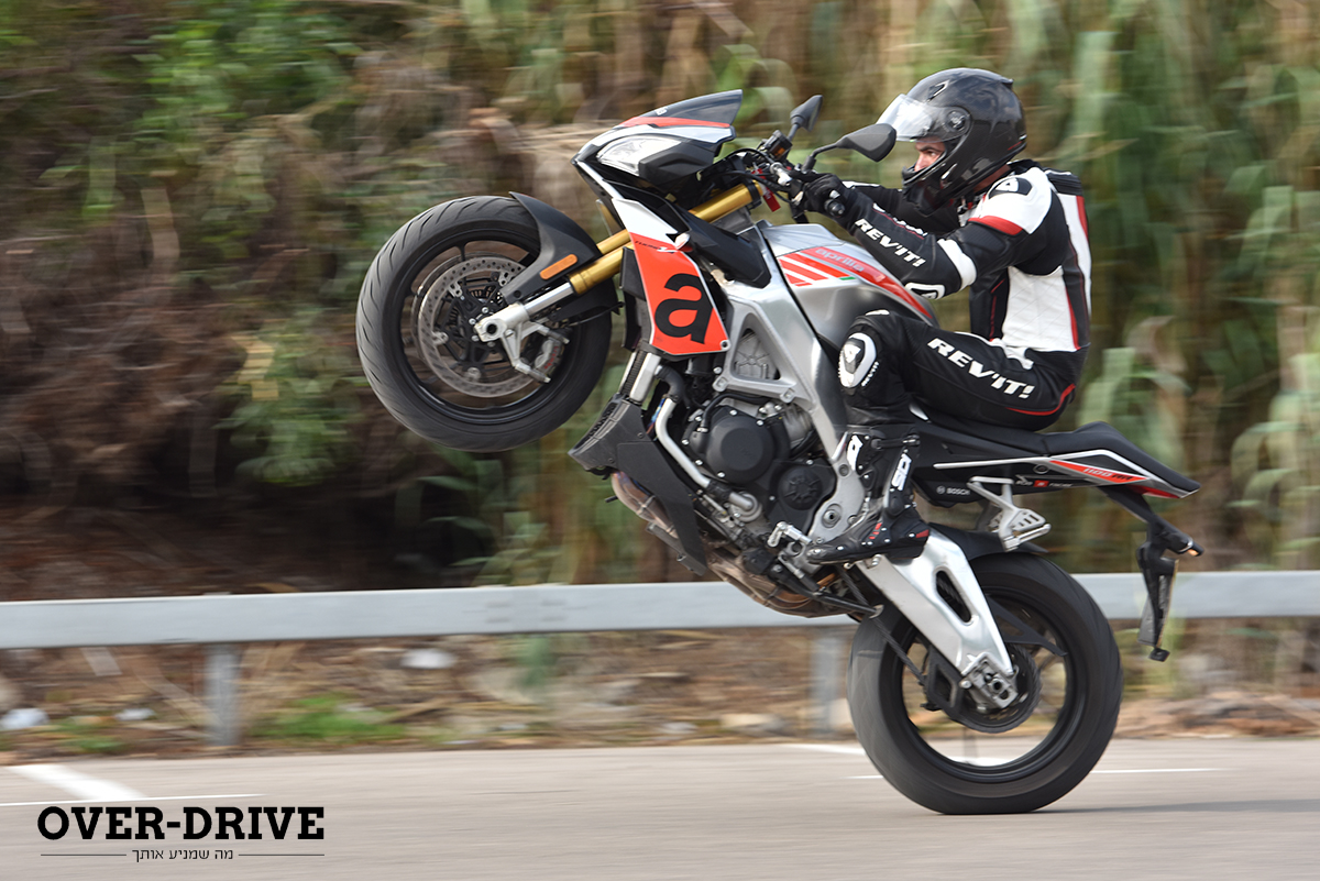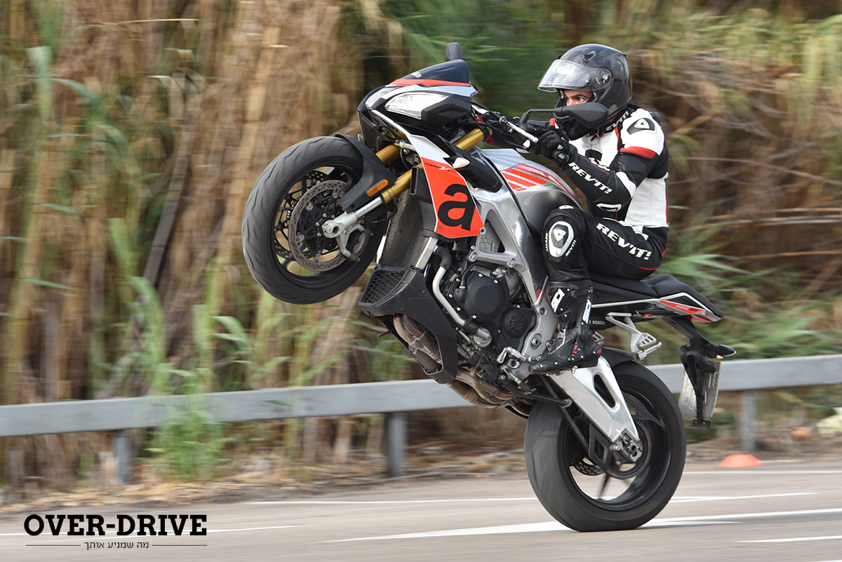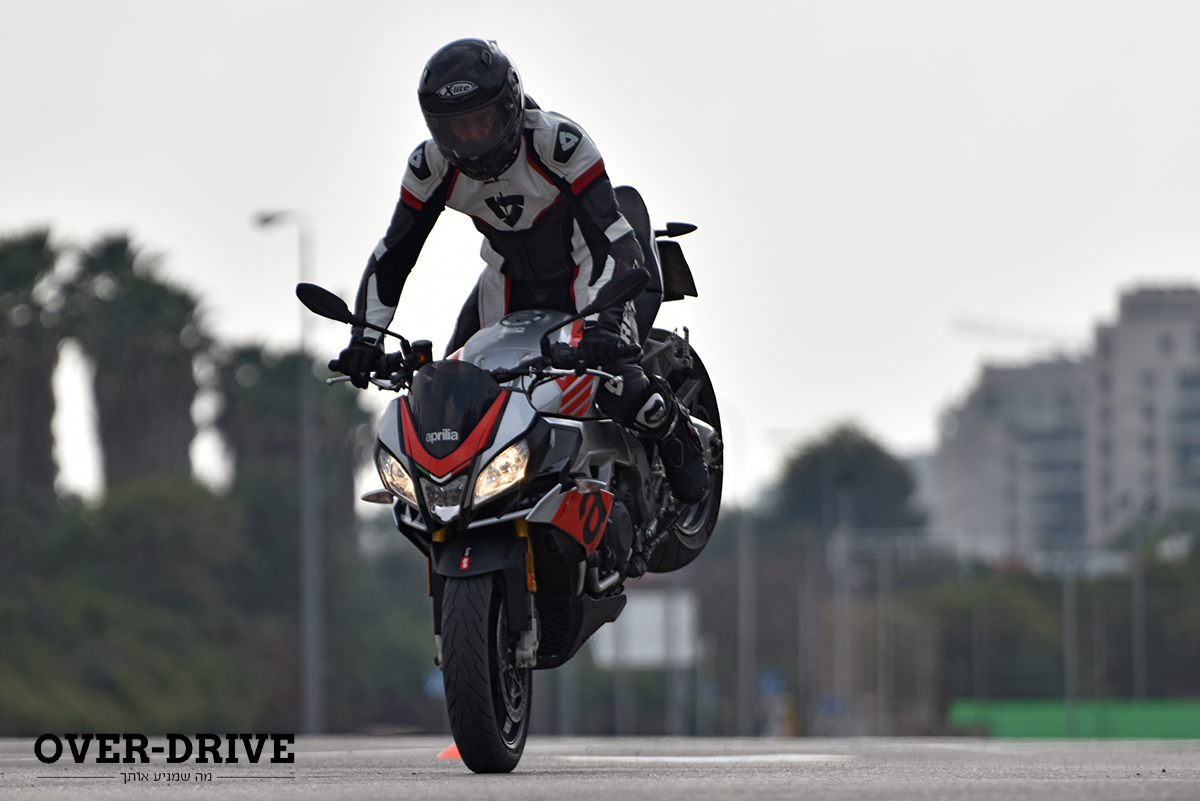 בתוכה יש לך את כל היציבות והספיגה שתרצה. הפידבק טוב, אבל לא מושלם. יש תחושה קבועה שהפרונט הזה קליל. וכשאתה פותח גז החוצה אתה מודה לחבר'ה באפריליה על משכך ההיגוי שיש כאן. בלעדיו אני לא רוצה לחשוב מה היה קורה.