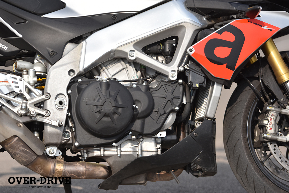 מקומו של המפלט הגדול בלתי נמנע אבל אפריליה שיחקו עם רכיבים במנוע (במטרה להוריד חיכוך) ועם מערכת ניהול המנוע בכדי לתת למנוע הזה לטפס עוד 500 סל"ד לפני המנתק. התפוקה לא נפגעה ולא תגרום לאף בר-דעת להתלונן – 175 כ"ס ב- 11,000 סל"ד ולא פחות מ-12.3 קג"מ ב-9,000 סל"ד.