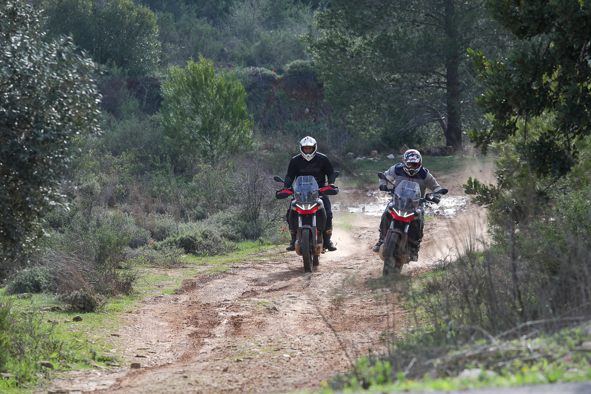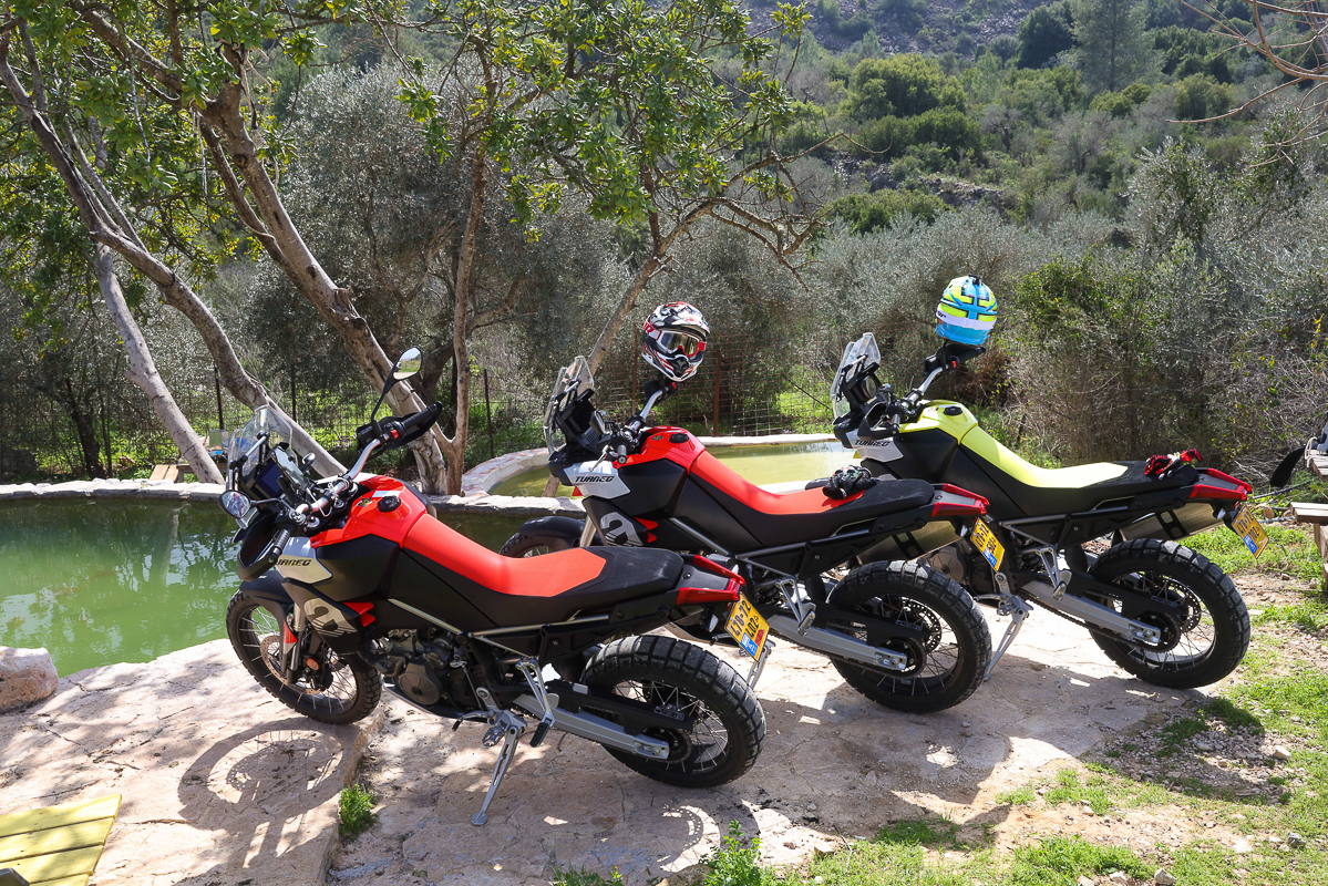 ההשקה המקומית, הציעה תוואי מעורב של כ-120 ק"מ, חלק גדול ממנה נערך בשטחי חבל בנימין הנפלא. בין זית למעין, אפשר היה להתרשם מאופיו של הטוארג, גם על הקרקע הקשוחה של האזור. יחידת ההנעה התגלתה כשותפה יעילה מאוד בתנאים ירודי אחיזה. יש מספיק כוח למטה בכדי לייצר תנועה ואופי הכוח הנשלח לגלגל האחורי מייצר אחיזה מרשימה גם כשבקרות מנותקות. מי שנהנה דווקא מאיבודי אחיזה של האחורי יקבל את אלו במעלה הסל"ד אם ייבחר לעשות זאת. תנוחת הישיבה בעמידה נוחה מאוד, קל לנוע לפנים ולאחור גם בעמידה ולהתאים את התנוחה למצב. המנוע כאן מוצב בזווית שונה בתוך השלדה, זקוף יותר, לפי אפריליה זה אמור לשפר את היכולת בשטח. מה שבטוח, שכל החשיבה כאן, מיקום המנוע, השלדה, המכלולים, הורדת מרכז הכובד, כל אלו משחקים כאלו לטובתו ולטובת הרוכב.