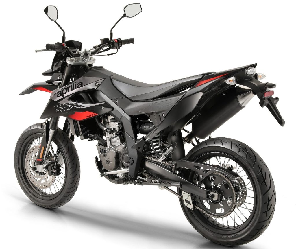 דגם הסופרמוטו הנקרא אפריליה SX 125, מצויד בזוג גלגלים בקוטר 17 אינץ', בלם דיסק קדמי בקוטר 300 מ"מ ובלם דיסק אחורי בקוטר 220 מ"מ. ניתן יהיה לבחור סכמת צביעה כסופה או אדומה.