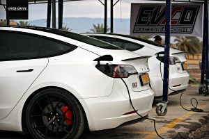 את היום התחלנו מוקדם מאד בבוקר, עוד לפני שהשמש זרחה. ברחבת הטיפולים חנו חמישה רכבים: שתי ניסאן GTR משופרות במיוחד המצוידות בבולמי EVCO, ב.מ.וו M2  קומפטישן, גם היא מצוידת בבולמי EVCO, והחלק המעניין, עד כמה שזה נשמע מוזר, זוג טסלות מודל 3 פרפורמנס: האחת מצוידת בבולמי הכניסה של EVCO ובאנטירולים משופרים, והשנייה סטנדרטית לחלוטין. מספר מטרות הוצבו באותו יום: תצוגת תכלית של בולמי EVCO על מסלול המרוצים, בדיקות וכיול הבולמים של שלושת רכבי הספורט, והשוואה בין זוג הטסלות, גם מבחינת הזמנים על המסלול וגם מבחינת התחושות מאחורי ההגה.
