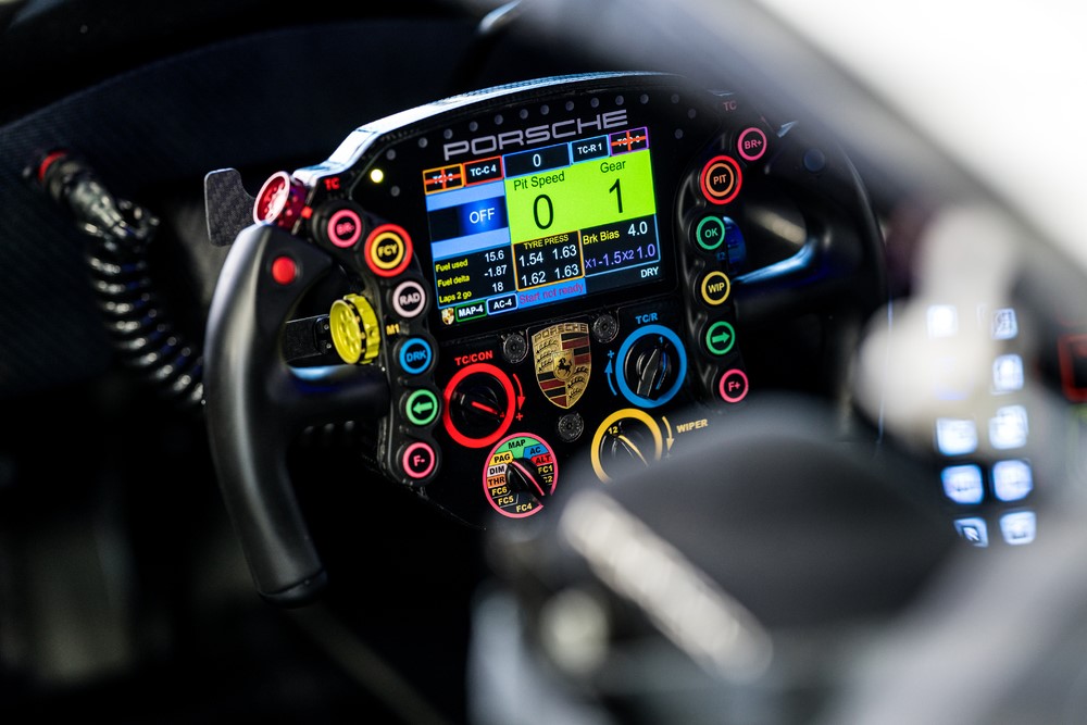 לפי פורשה, מבחינתם,ההתפתחויות בעניין זה רק המריאו ממש בשנת 2000. מאז, ההתקדמות האדירה בפיתוח ההגה ניכרת בבירור", מסביר פסקל זורלינדן, מנהל מחלקת המוטורספורט של פורשה. תוך 20 שנה בלבד גלגל מכוסה מעור התחלף לבקר רב תכליתי. ב-RSR העדכניות עומדים לרשות הנהג 30 פונקציות על גלגל ההגה. רק על תפעול גלגל ההגה והפונקציות שבו, מופקדים שני מהנדסים בווייסאך, וזה כל תפקידם.