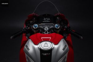 בדומה לפאניגלה V4 S גם גרסת ה-R מגיעה בתצורה עם זרוע אחורית כפולה וחלולה, אך אפשרות כיוון למיקום ואורך הזרוע. תפריט המתלים, מתוצרת אוהלינס כמובן, כולל מזלג הפוך קדמי 43 מ"מ NPX ובולם אחורי TTX36 עם כיוונון מלא מכאני במקום המערכת החצי אקטיבית והנשלטת אלקטרונית שבדגם ה-S. מערכת הבלימה מתוצרת ברמבו היא מסדרת Hypure הייעודית למסלול, החישוקים עשויים סיבי פחמן ועל כמות מערכות העזר האלקטרוניות ואפשריות הכיול השונות ניתן לכתוב עד אחרי החגים.