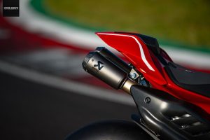 עבור מי שרוצה עוד יותר כוח ומוכן לוותר על תקינת הכביש, מוצעת עבור דוקאטי פאניגאלה V4 R מערכת פליטה מלאה של אקרפוביק שמקפיצה את ההספק ל-235 כ"ס וגם תחסוך 7 ק"ג ממשקל האופנוע, העומד על 186.5 ק"ג ללא דלק. שימוש בשמן מיוחד למרוצים מתוצרת של המפחית את החיכוך הפנימי יאפשר לרוכב לקבל עוד 3.5 כ"ס משמעותיים. יחס העבר הסופי ארוך יותר יחד עם פריינג אווירודינמי יותר ב-4% אפשרו להגדיל את המהירות המרבית ל-318.4 קמ"ש בתצורה הרגילה ו-330.6 קמ"ש בתצורת המרוצים המלאה.