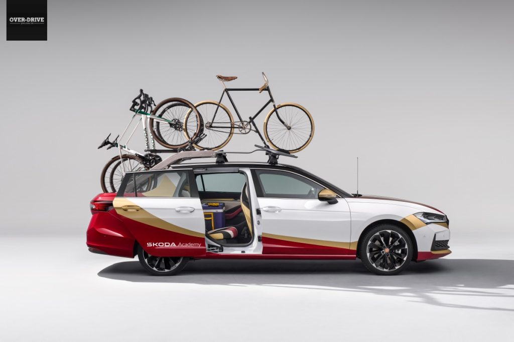 אגב, הצביעה של המכונית בשילוב של זהב, אדום ולבן היא מחווה לרכבים הראשונים שיצרו לורין וקלמנט בשנת 1905. את שילוב הצבעים הזה ניתן למצוא גם בתא הנוסעים שמגיע ברמת הגימור הגבוהה של הסופרב (L&K כידוע). סקודה סופרב L&K 130 צפויה להיות מוצגת במהלך מרוץ הטור דה פראנס שיערך בחודש הבא, אך בינתיים למרות הפתרונות המעניינים שהיא מציגה עבור הרוכבים, הם יצטרכו להסתפק בגרסאות סטנדרטיות של הסופרב כרכבי סיוע.