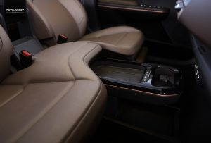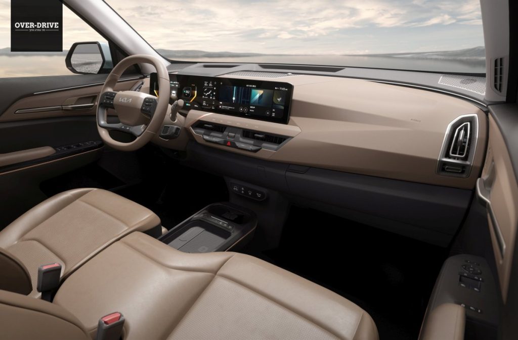 תא הנוסעים מעוצב לפי הגישה אותה אימצה קיה בדגמיה החדשים, עם צמד מסכים צמודים זה לזה ומשולבים כיחידה אחת מעל לוח המכשירים. בקיה ויתרו על קונסולה מרכזית גבוהה או צפה כדי לאפשר חלל נרחב ופתוח בין הנהג לנוסע, ובמקום זאת בחרה במשענת יד המששלבת את משטח הטעינה לטלפון האלחוטי שהיא חלק אחיד ממושב הנוסע, מה שמקנה מהצד מראה של ספסל רוחבי. תא הנוסעים שופע פטנטים לאכסון ורצפת תא המטען אף יכולה להפוך לשולחן מתקפל.