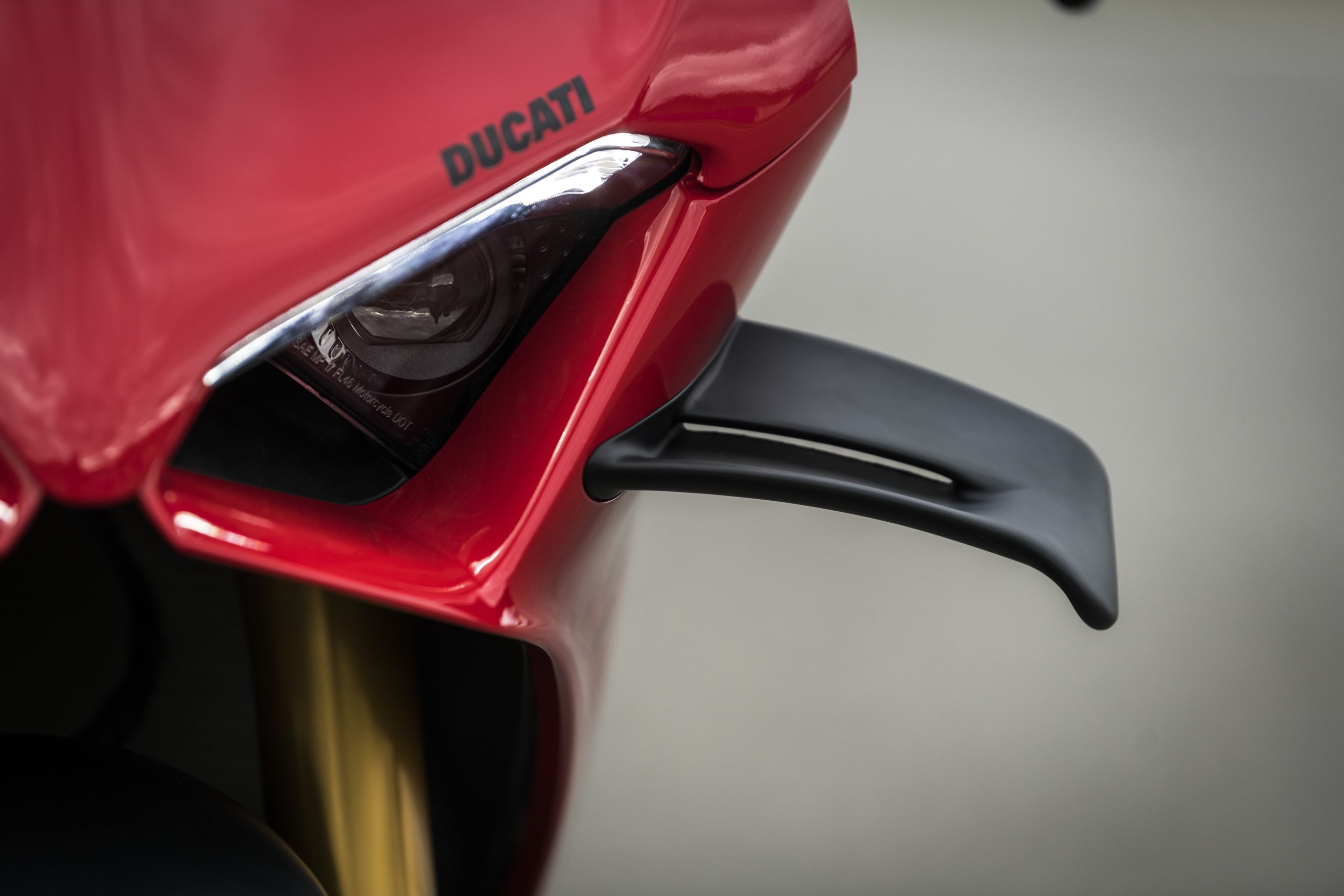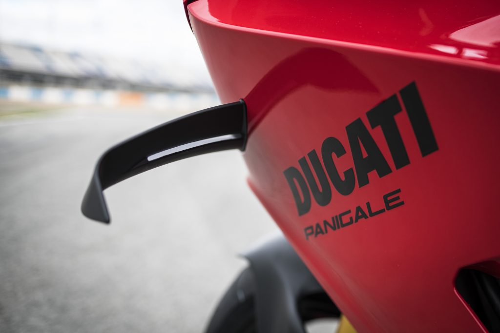 עוד במסגרת העדכונים אפשר למצוא כאן שינויים אווירודינמיים וארגונומיים. גולת הכותרת האוירודינמית מתייחסת לכנפונים הקדמיים, שקבלו פרופיל כפול. הסידור החדש מאפשר פחות גרר לצד אותה רמת הצמדה. ב-300 קמ"ש לדוגמה, מייצרים הכנפונים האלו 37 ק"ג של הצמדה על הגלגל הקדמי, אבל לא רק. העיצוב החדש שלהם מאפשר תמיכה קטנה יותר מצידו הפנימי של הפיירינג, ורק בחלק הזה נחסכו כאן 600 גרם. לרוכב דאגו בדוקאטי עם מגרעות עמוקות יותר לברכיים, כאלו שיאפשרו התנגדות טובה יותר לכוחות הבלימה וגם נקודת אחיזה משופרת. גם המיכל עוצב מחדש בכדי לייצר חיבור נוח יותר לזרוע הרוכב בהטיה. הוא גם מכיל ליטר נוסף של דלק.