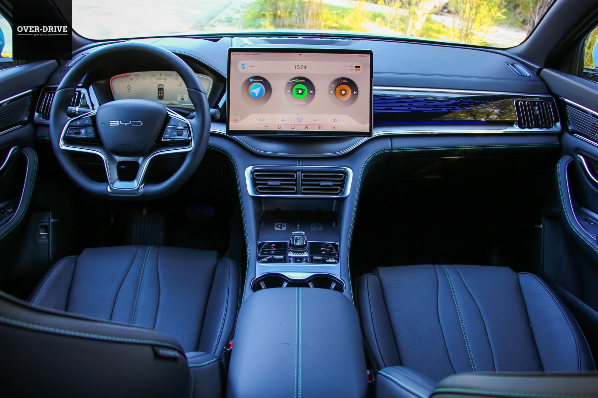 כמקובל בקרב המותגים הסינים בכלל ו-BYD בפרט, רמת האבזור גבוהה. כבר בגרסת הכניסה, Comfort, ישנם גג פנורמי נפתח, תאורת LED מלאה, דלת תא מטען הנפתחת ונסגרת באופן חשמלי, מערכת שמע עם 9 רמקולים, חישוקי סגסוגת בקוטר 19 אינץ' ומגוון מערכות בטיחות, ביניהן בקרת שיוט אדפטיבית וזיהוי תנועה חוצה מאחור. הגרסה הבכירה, Design, מוסיפה לאבזור מסך מולטימדיה בגודל 15.6 אינץ' הכולל את אפשרות הסיבוב על צירו ב-90 מעלות אותה פגשנו בדגמי BYD האחרים, תצוגה עילית (HUD), מערכת שמע עם 10 רמקולים מבית Infinity, ומערכות מתקדמות נוספות כמו תאורת אווירה דינמית ומערכת לטיהור האוויר.