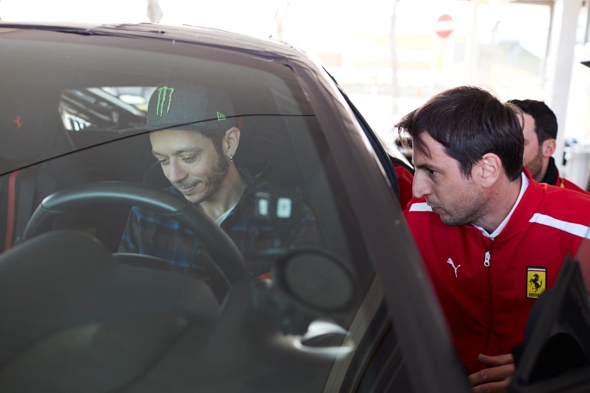 החיבור בין הרוכב והרכב האיטלקים כמעט ומתבקש והוא איננו חדש. רוסי מתחרה מפעם לפעם במירוצי ראלי מקומיים, כבר טעם מכוניות F1 של פרארי ונראה כאילו הוא מרגיש טבעי ונינוח מאחורי ההגה.