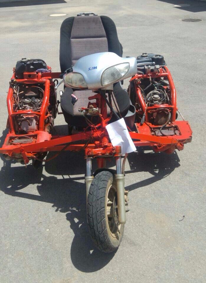 במסגרת סיורי שוטרי משטרת ישראל בצירי התנועה ברחבי הארץ, נראה נהג בכביש בינעירוני, 65 סמוך לגן שמואל, כשהוא נוהג ברכב מאולתר שנבנה, ככל הנראה, משני קטנועים.