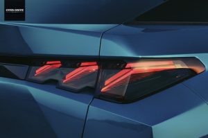 אבל המידות הן רק פרט טכני שנבלע מול העיצוב החדש. פיג'ו E-3008 מאמצת מבנה פאסטבאק (בדומה ל-408 החדשה), עם קו גג משתפל הכולל ספויילר עליון ובליטה קטנה בקצה הדלת החמישית, מה שמקנה ל-E-3008 מראה דינאמי. בחזית, פיג'ו שמרה על שלושת טפרי האריה לצד כל אחת מיחידות התאורה שמשתלבים בשבכה חדשה ודרמטית מבעבר. עוד בעיצוב החיצוני ניתן למצוא חישוקים בעיצוב ייחודי ופס בצבע מתכתי התוחם את קו החלונות העליון. בפיג'ו מתגאים שתצורת הפאסטבק תורמת גם ליעילות האווירודינמית, עם מקדם גרר של 0.28. לא רע עבור קרוסאובר.