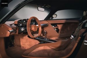 הדבר נשקף מהחזית בעלת יחידות התאורה העגולות, קו הגג ופיסולי הגוף המעוגלים, כשהחרטום הרחב מזכיר את דגמי המרוצים של פורשה כמו ה-935. הזנב מינימליסטי חשוף ברובו כאשר רוב הגלגלים האחוריים נותרים ללא חיפוי והאלמנט הבולט מאחור הוא דיפיוזר מאסיבי. כמובן שכל חלקי המרכב עשויים גם הם מסיבי פחמן. ההשראה מפורשה ממשיכה גם לתא הנוסעים עם לוח מחוונים המשלב חמישה מחוונים עגולים ביחידה האחת המופרדת מקו לוח המכשירים, כמו גם גלגל הגה, ידית ההילוכים ואלמנטים נוספים שהם פרשנות לדגמי פורשה הקלאסיים משנות ה-70 וה-80.