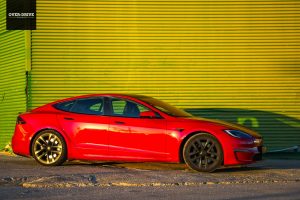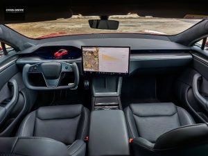 נשק יום הדין של טסלה מודל S כדי להישאר רלוונטית, בעידן שבו יצרניות אחרות מדביקות את פער, הוא כוח. המון כוח. לא מפתיע בהתחשב במוצא האמריקאי שמקדש שרירים. לפני שנגיע להיבטים האחרים בואו נשים את הדברים על השולחן, בלי קלישאות לעוסות או נסיון למצוא הגדרות חדשות במילון להתפעלות. עם 1020 כ"ס המאפשרים זינוק ל-100 ב-2.1 שניות במרחק של כמה לחיצות על מסך מגע, אין שום מכונית בעולם מציעה ביצועים כמו טסלה מודל S פלייד שלא מיוצרת בעבודת יד או נפלטה בטעות ממסלול המרוצים, בטח לא בכזו קלילות.