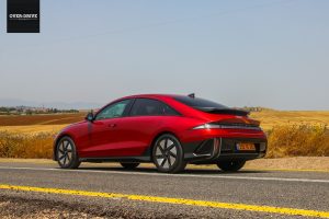 עד כמה זה משמעותי? כאמור הטווח המוצהר בגרסה הנבחנת עומד על 614 ק"מ עם סוללת 77.4 קוט"ש. לשם השוואה, יונדאי איוניק 5 הגבוהה יותר ב-8 ס"מ עם סוללה ומנוע זהים היא בעלת טווח מוצהר נמוך יותר בכ-100 ק"מ. איוניק 6 אגב גם מעט כבדה יותר, אך עושה שימוש בחישוקי 18 אינטש הגיוניים וחסכוניים יותר.