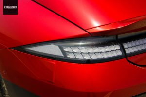 יונדאי בחרה באיוניק 6 באופציה השלישית. העיצוב שלה לא סטנדרטי בלשון המעטה וללא מעט אנשים יהיה קשה לעיכול. שלוב של אלמנט הפיקסלים שהכרנו באיוניק 5, עם מרכב סדאן דמוי פאסטבק היוצר אחוריים מעוגלים בשילוב ספויילר כפול השולח אזכור לפורשה. במקרה שלה זה לא נובע רק מהתעוזה העיצובית של יונדאי בשנים האחרונות. יונדאי יכלה לעצב מכונית סדאן קונבנציונלית יותר כדי לאתגר את טסלה מודל 3 המשמימה עיצובית.