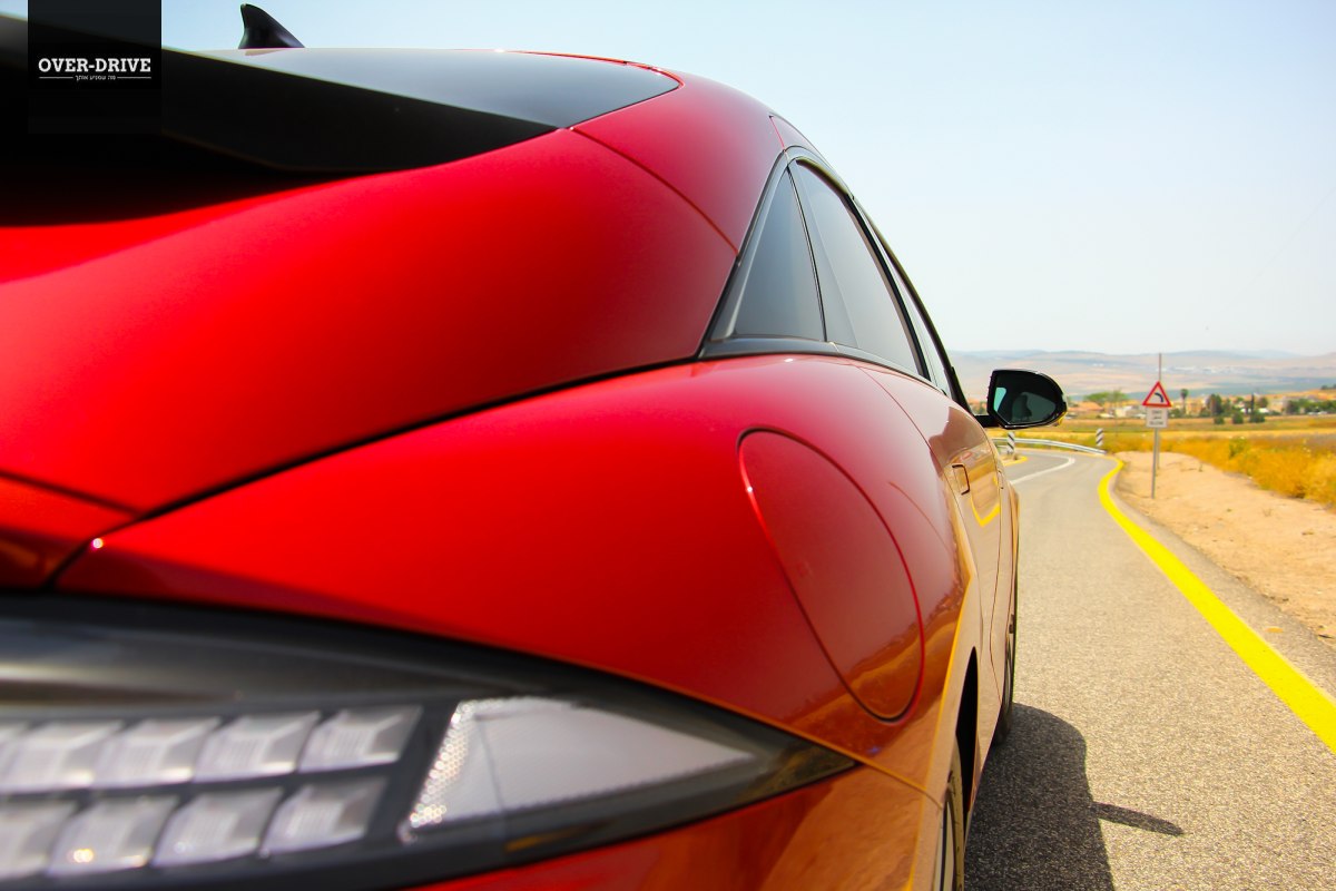 יונדאי בחרה באיוניק 6 באופציה השלישית. העיצוב שלה לא סטנדרטי בלשון המעטה וללא מעט אנשים יהיה קשה לעיכול. שלוב של אלמנט הפיקסלים שהכרנו באיוניק 5, עם מרכב סדאן דמוי פאסטבק היוצר אחוריים מעוגלים בשילוב ספויילר כפול השולח אזכור לפורשה. במקרה שלה זה לא נובע רק מהתעוזה העיצובית של יונדאי בשנים האחרונות. יונדאי יכלה לעצב מכונית סדאן קונבנציונלית יותר כדי לאתגר את טסלה מודל 3 המשמימה עיצובית.