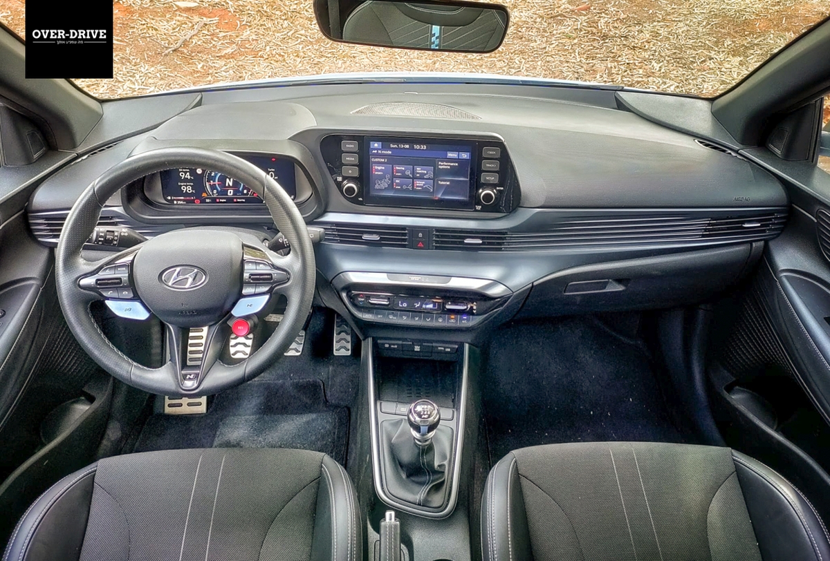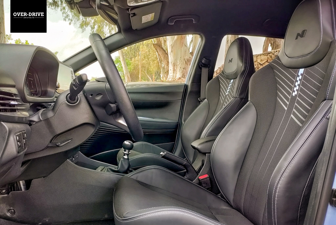 בתוך תא הנוסעים, יונדאי עשו עבודה מצוינת בלהשכיח מהנהג את המקור השימושי אך בסיסי. נכון, יש לא מעט חומרים קשיחים וכהים בתא הנוסעים, אבל נעשתה כאן עבודה מורגשת לכבוד הייעוד החדש. בכל מקום בתא יש תזכורות לכך שזו גרסת N ובעיקר על ההגה עצמו, שאינו עבה מדי סביב החישוק ולא גדול מדי מבחינת הקוטר. יש עליו שני כפתורי N מאפשרים גישה ישירה למצבי הנהיגה השונים הניתנים להתאמה אישית דרך אפשרויות כיוונון רבות מאוד על המסך המרכזי. ישנם מושבי דלי תומכים ואוחזים להפליא ממותגי N. התחושה מאוד טכנולוגית. אתה יכול לכוון כמעט כל מה שאתה רוצה. איך יתנהג המנוע, איזה רעשים יפיק האגזוז, כמה אגרסיבי יהיה גז הביניים שיודעת ה-N לייצר ועוצמת ההתנגדות של ההגה. התצוגה מאפשרת מספר בחירות לכל רכיב, לי זה הזכיר קצת פלייסטיישן.