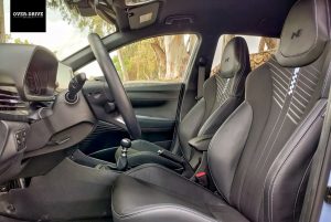 נגן את ששת ההילוכים שלו על היכן שהכוח מיוצר ותקבל טיל קטן ויעיל מאוד. כזה שיכול לשמור על קצב גבוה גם מול מכוניות חזקות ממנו. שגר אותו מהמקום בצורה הנכונה (לאו דווקא עם בקרת השיגור שיש כאן) ותגלה שהקטנה הזו מייצרת ביצועים גדולים. לעומת זאת, חפש את התגובות של הדוושה הימנית תחת תקיפת הכביש החביב עליך ותגלה שהמצערת האלקטרונית הזו, מרגישה מושהית. מאוד. זו לא רק השהיית הטורבו של המנוע הזה, יש חוסר לינאריות ברור בפעולה של דוושה ימין. ומה שמאיץ ככה, צריך גם לעצור, ויש כאן עוצמת בלימה אדירה. כזו שמאפשרת לך לגלח מהירות מהר, מאוחר וחזק יותר ממה שיכול להיראות ראוי. אבל שוב, גם כאן, התחושות חסרות עם דוושת בלם שהרגישה רכה מאוד בתחילת מהלכה ואז הראתה התנגדות קשה ועצית. תחושה לא עגולה ולא טבעית.