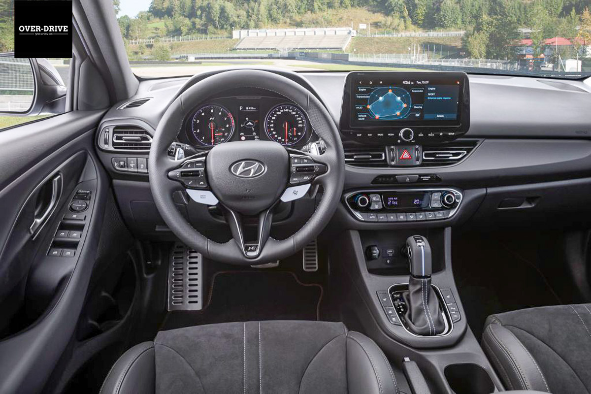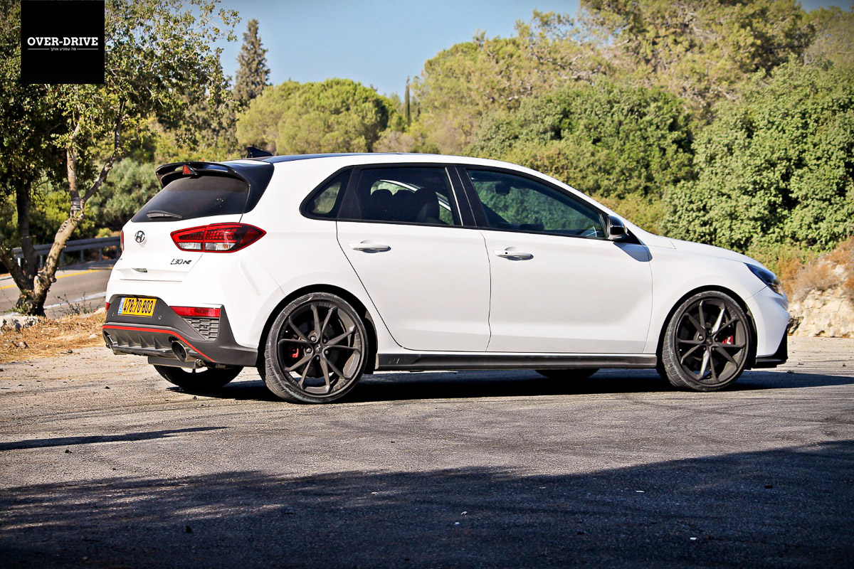 הפרוטוקול מחייב לפרוט משהו אחר עכשיו, את כל מה שחדש כאן. ויש לא מעט. אני מדלג ברשותך על תיאור מרווחי רגליים וספירת מחזיקי הכוסות או שקעי הטעינה. או עדכוני אבזור כאלו ואחרים. מה שכן מעניין אותנו מתייחס לשינויים משמעותיים יותר במקומות כמו מערכת ההנעה וכו'. זה הזמן אולי לציין – יונדאי I30N מגיעה לארץ במפרט הכי-הכי שלה. זה אומר שהמנוע המוגדש כאן מפיק 280 כ"ס, שהוא משודך לתיבה כפולת מצמדים עם שמונה יחסי-העברה ושיש 'דיפרנציאל' מוגבל החלקה מבוסס דיסקיות נשלט אלקטרונית. גם החישוקים הם הגדולים יותר שיונדאי מציעה כאן (19 אינץ') עם צמיגים רחבים יותר ובעלי חתך נמוך יותר. יש כאן גם את מערכת הבלימה בעלת הדיסקים הגדולים יותר (360 מ"מ מלפנים ו-314 מ"מ מאחור).