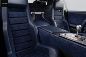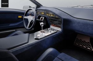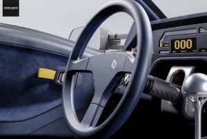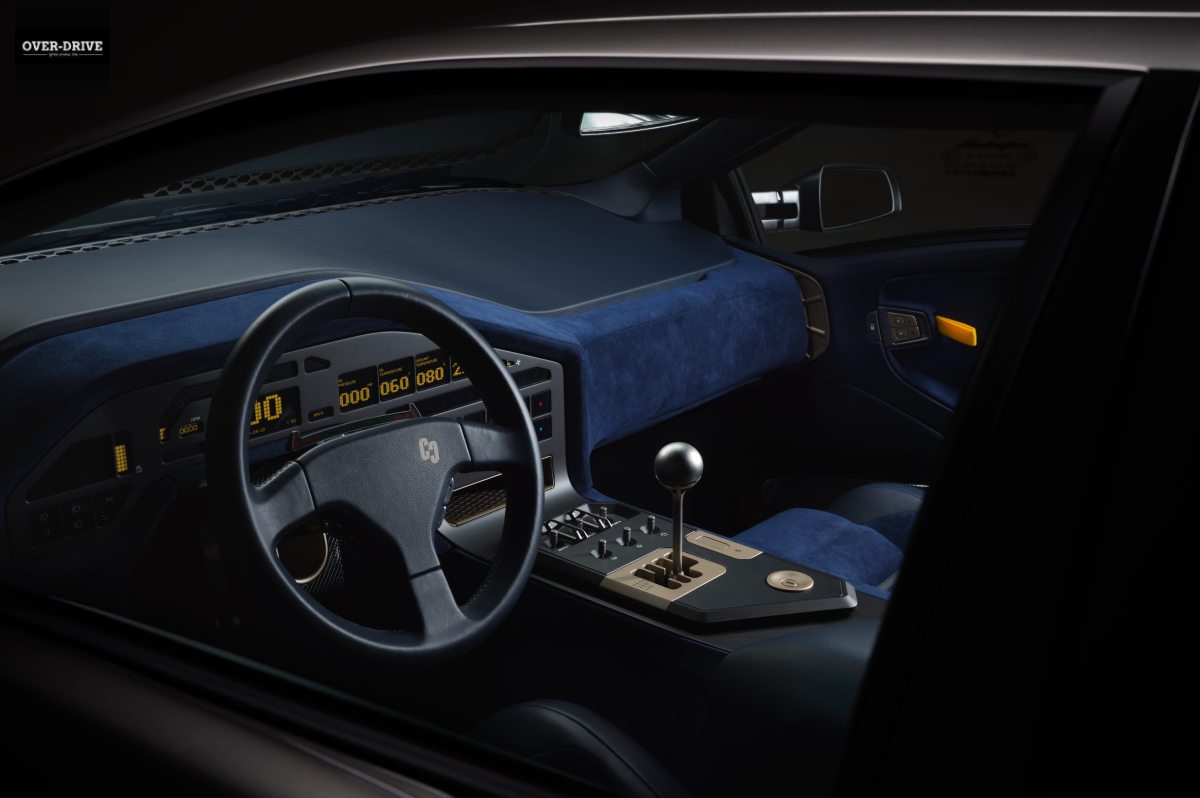 תא הנוסעים עבר מהפך ונבנה מחדש עם שילוב של מחוונים דיגיטליים מפוקסלים בסגנון משחקי וידאו של התקופה המשולבים בתוך מסגרת אלומיניום. כל הקונסולה המרכזית נבנתה מחדש ותא הנוסעים כולו, כולל דיפוני הדלתות והמושבים החדשים, מדופן באלקנטרה. המתגים השונים וידית ההילוכים עשויים מאלומיניום או מגנזיום בכרסום CNC ומשלימים את המראה המינימליסטי-תעשייתי.