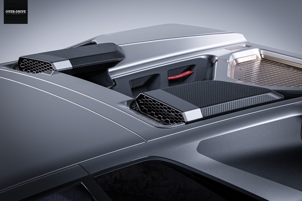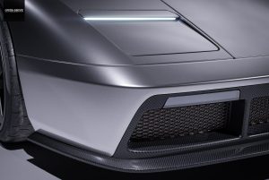 מבט מדוקדק יותר חושף שינויים מהותיים שנעשו במרכב. הכנפיים הקדמיות והאחוריות הורחבו כדי לאפשר מפשק סרנים רחב יותר ושימוש בחישוקי 19 אינץ' מאלומיניום מחושל במקום 17 אינץ' במקור. כונסי האוויר הצידיים עוצבו מחד ונוספו עוד שני כונסי אוויר מזדקרים מסיבי פחמן מאחורי הגג. הטיפול המעניין ביותר בוצע לפנסים הקדמיים. הפנסים הקופצים המזוהים עם מכוניות העל של התוקפה הוחלפו בכיסוי דו-שלבי שבמצב סגור נראה נאמן למראה המקורי, המצב ביניים חושף פסי תאורת יום דקים ובקיפול מלא כלפי מטה מציג את יחידות התאורה המובנות מאחוריו.