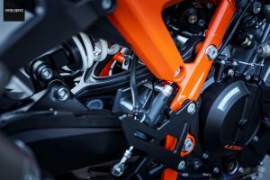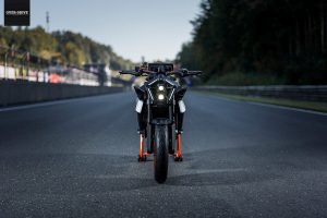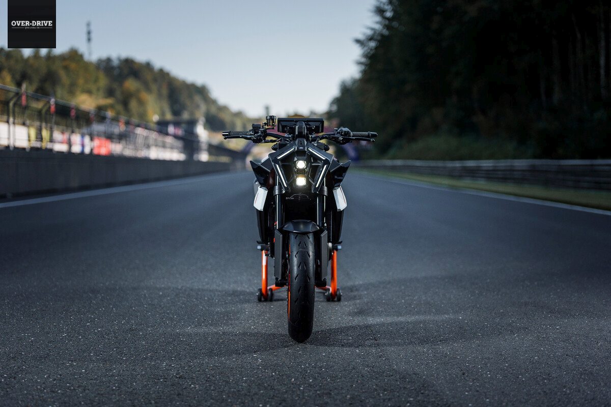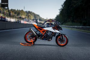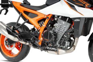 מנוע ה-947 סמ"ק שהוצג לראשונה ב-990 דיוק כאבולוציה למנוע הטווין המקבילי של ק.ט.מ זוכה בגרסת ה-R לתוספת של 7 כ"ס המביאה אותו להספק של 130 כ"ס הודות לשיניים במערכת הניהול ומערכת הפליטה, מה שמאפשר למנוע להגיע עד ל-10,500 סל"ד לפני התערבות מנתק ההצתה. נתון המומנט נותר ללא שינוי על 10.5 קג"מ. לבחירת הרוכב יוצעו ב-R ארבעה מצבי רכיבה כולל מצב אחד להתאמה אישית, כאשר כאופציה בתשלום מוצעת חבילה מורחבת עם מצב רכיבה ייעודי למסלול ושני מצבים נוספים להגדרה אישית.