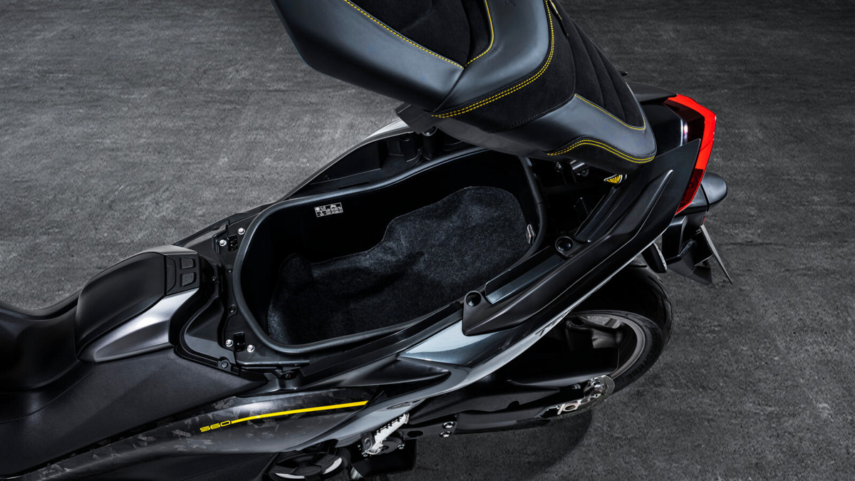 המאפיין העיקרי של הדגם שהוצג זה הם חלקים שונים בגימור קרבון. הכסף הקדמית, פלסטיקת הצד, השדרה המרכזית ומגן החום שעל מערכת הפליטה – כל אלו מקבלים את הגימור האמור. יש גם נגיעות בצהוב לאורך הקטנוע, צהוב שלקוח הישר מגוון הצבע המוכר של הדגם המקורי.