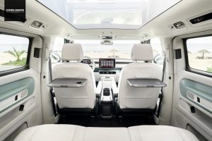 בסוף השבוע נחשפה רשמית גרסת שבעת המושבים של ID.Buzz במפגש הרשמי של בעלי טרנספורטרים שנערך בקליפורניה, המקום בו הפך הטרנספורטר הקלאסי (המכונה גם Bus) לסמל של ילדי הפרחים. כדי לאפשר את הוספת שורת המושבים השלישית הוא זכה לתוספת של 25 ס"מ לבסיס הגלגלים שעומד מעתה על 325 ס"מ – נתון שגם מכוניות פאר בגרסות בסיס גלגלים ארוך לא מגיעות אליו. האורך הכללי צמח ל-496 ס"מ כך שה-Buzz הוא כבר לא ממש מיני ואן, אבל זה לא פוגע כלל בעיצוב המתוק שלו.