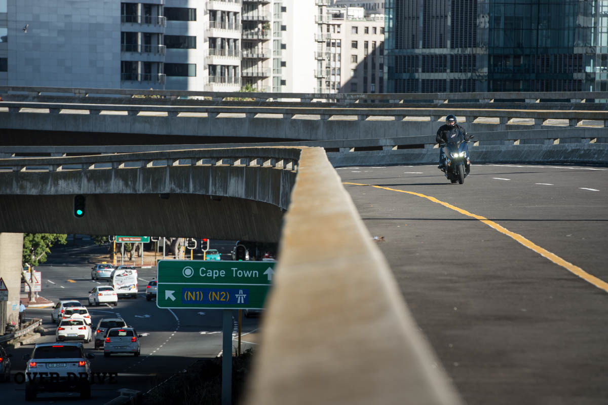 ה- TMAXהרגיש נוח למדי בנסיעה העירונית הקצרה שערכנו בדרך לכבישים המדהימים שמסביב לקייפטאון. כבר בתוך העיר אפשר להרגיש את התחושות העגולות והאיכותיות שמשדרת מערכת ההנעה כאן, את הכיול המושלם של הואריאטור וגם להתנסות בניתוק מערכת הבקרה במטרה לייצר שעשוע על פסי מעברי החציה…