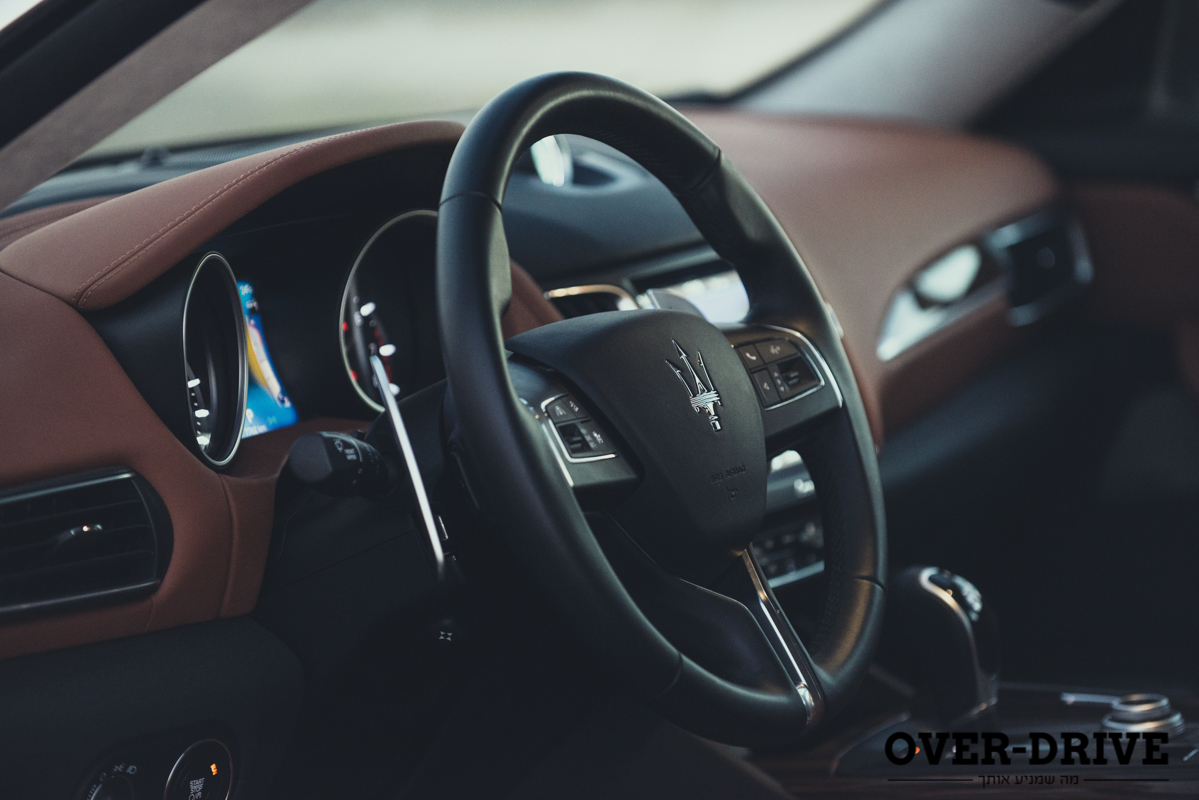יש כמה דברים שלוקח זמן להתרגל אליהם עם מזראטי לבנטה, כמה מוזרויות איטלקיות – כדי שתזכור איפה אתה נמצא. מוט ההילוכים מפקד אלקטרונית על התיבה אבל התפעול שלו לא תמיד אינטואיטיבי. מיקום כפתור ההנעה מצד שמאל של ההגה גם לא מרגיש טבעי במיוחד. ואחרון, תנוחת הישיבה – אין שום בעיה לכוונן את ההגה והמושב (שלא מציע תמיכה מספקת, בטח שלא לאוטו עם יכולת כמו של הלבנטה הזו) ולהגיע לתנוחת נהיגה טובה. אבל אז אתה מגלה שההגה גדול מדי, ותפעול "לפי הספר" שלו גורם למרפק ימין לפגוע במשענת האמצע.