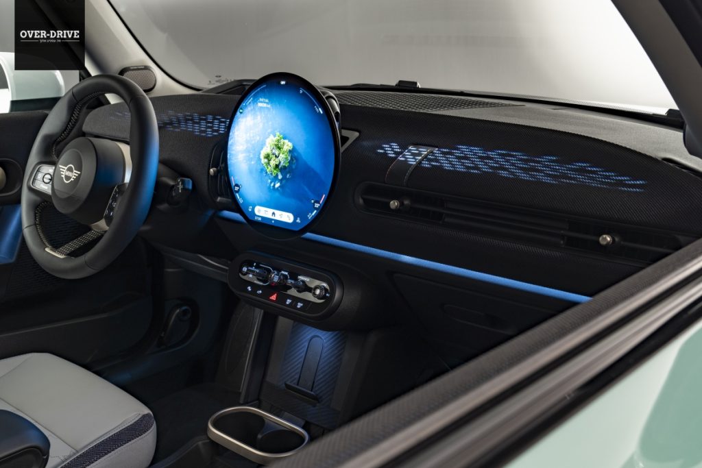 שינוי משמעותי יותר נעשה בתא הנוסעים, כאשר למעשה הקוקפיט כולו זהה לזה של המיני החשמלית. זה אומר שאין לוח מחוונים מאחורי ההגה וכל תצוגת המידע, כמו גם תפעול המערכות השוות ומערך המולטימדיה מתרכז במסך העגול הענק שבמרכז הדשבורד. פאנל הפיקוד המרכזי כולל את מצג ההנעה, בורר ההילוכים ובורר מצבי הנהיגה. מיני קופר בנזין תוצע בשלוש ורסיות גימור פנימי ועיצוב חיצוני: קלאסיק הבסיסית, ספורט בעלת שבכה מושחרת וגימורים ספורטיביים בתא הנוסעים ואקסקלוסיב היוקרתית עם ריפודי משולבי עור ורמת אבזור גבוהה במיוחד. גם היצע מערכות הבטיחות האקטיסיות שודרג ומיישר קו עם האחות החשמלית.
