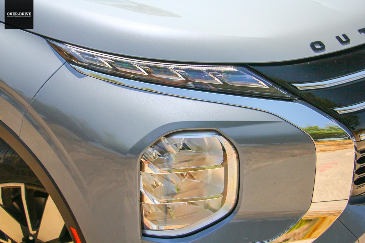 חיצונית השינויים שנעשו באאוטלנדר מינוריים. עדכונים קלים לשבכה הקדמית ולפגוש הקדמי אמורים להקנות חזות מודרנית יותר ולשפר את אווירודינמיות קלות, אבל זה לא משהו שאפשר לעלות עליו אם אין לכם במקרה מנהרת רוח בחצר האחורית. יש יחידות תאורה חדשות, עיצובי חישוקים וגווני מרכב חדשים, אבל בסופו של דבר האאוטלנדר נותר כפי שהוא – רכב פנאי המשדר מראה מגודל ותפוח יחסית לגודלו האמיתי. אחרי הכל, עם 472 ס"מ מפגוש לפגוש הוא ארוך ב-12 ס"מ מטויוטה ראב 4 (שהוא כידוע נטול שורת מושבים שלישית) אך בסיס הגלגלים עומד על 270 ס"מ שהם ס"מ אחד בלבד יותר מהראב. למראית העין המגודלת תורמים גם חישוקי 20 אינץ' שהם סטנדרט בכל רמות הגימור, למעט זו הבסיסית, ומרווח גחון נדיב יחסית לקטגוריה של 20.4 ס"מ.