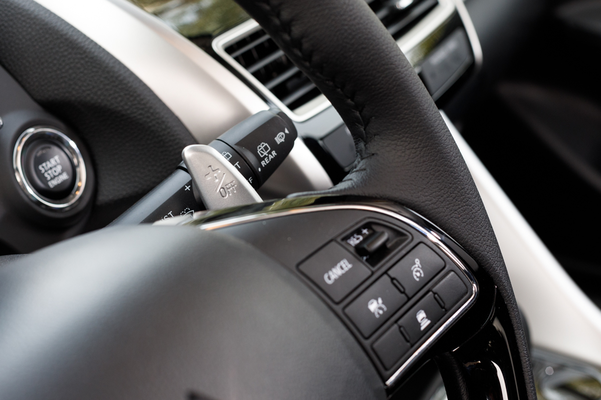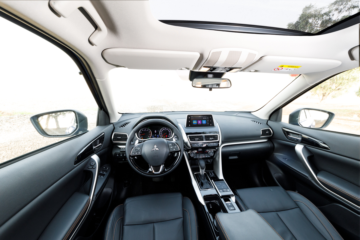 רמת האבזור ברכב המבחן (פרימיום) גבוהה מאוד וכוללת מושבים חשמליים, שני גגות שמש, ריפודי עור, שימוש ללא מפתח ועוד. גם רשימת אבזור הבטיחות המתקדם ארוכה – כבר מגרסת הכניסה של האקליפס-קרוס. בין השאר אפשר למצוא כאן בקרת שיוט אדפטיבית, התרעה על סטייה מהנתיב, תאורה דינאמית, התראה על תנועה חוצה מאחור, בלימה אוטונומית (המזהה גם הולכי רגל) וזיהוי רכבים בשטח המת.