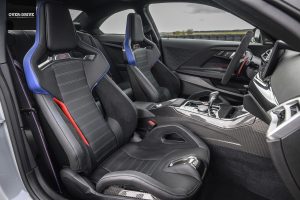 אלא שיש כאן יותר מרק קוסמטיקה. מנוע ששת הצילינדרים כפול המגדשים בנפח 3.0 ליטר עבר מקצה שיפורים הכולל בין היתר מערכת ניהול מנוע מעודכנת ומערכת פליטה ספורטיבית מטיטניום. אלו מעמידים את תפוקת המנוע של ה-CS על 530 כ"ס המתקבלים ב-6,250 סל"ד ו-66.3 קג"מ הזמינים בין 2,650 ל-5,730 סל"ד. מדובר בתוספת של 55 כ"ס ו-5.1 קג"מ לעומת המנוע ב-M2 הסטנדרטית, ואלו כבר מספרים ששמים אותה בטריטוריה של ב.מ.וו M4 שחזקה רק ב-20 כ"ס בגרסת ה-CS שלה.
