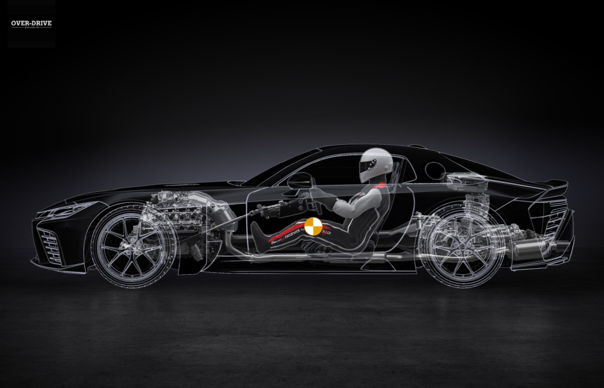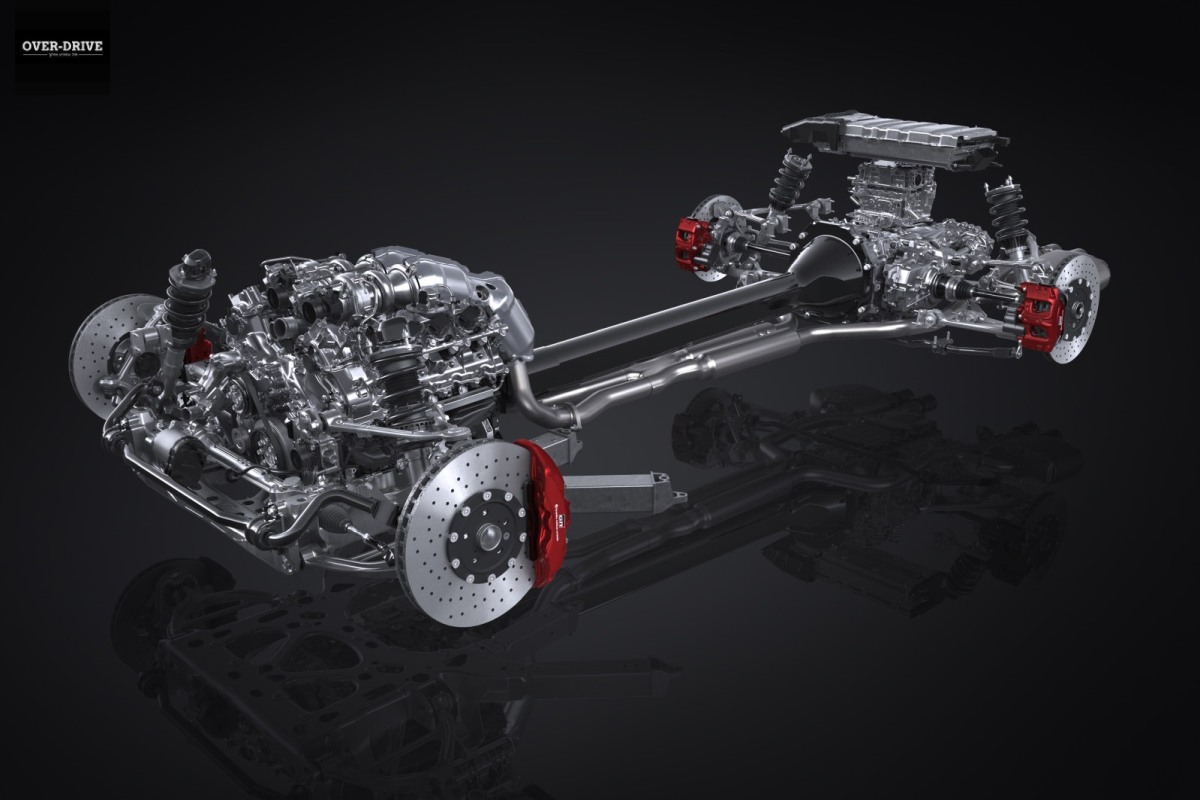 אבל מה שמעניין כאמור הוא הטכנולוגיה שמאחורי. הבשורה הכי חשובה מגיעה מבחינת המנוע. עבור GR GT פותח מנוע V8 חדש בנפח 4.0 ליטר המצויד בשני מגדשי טורבו, וכיוון שעדין טויוטה צריכה לעמוד בתקנות הזיהום, וגם כיוון שהיא נושאת דגל של טכנולוגיה היברידית, ישנו גם מנוע חשמלי. אלא שהמנוע החשמלי לא צמוד למנוע הבנזין, הוא צמוד לתיבת תיבת ההילוכים שהיא אוטומטית בעלת שמונה יחסי העברה ומותקנת על גבי הסרן האחורי לצד מכלול של דיפרנציאל מוגבל החלקה, מה שעוזר גם ליצר חלוקת משקל של 55:45 בין הסרנים. הכוח מועבר מהמנוע דרך גל הינע מסיבי פחמן אל תיבת ההילוכים מאחור, כאשר המנוע החשמלי מצטרף לסייע כדי לצמצם את "נפילת" הכוח בהחלטת ההילוכים ואת השהיית הטורבו. בטויוטה לא נוקבים בנתוני תפוקה רשמיים כרגע, אך מצהירים על הספק של למעלה מ-650 כ"ס ומומנט של קרוב ל-90 קג"מ.
