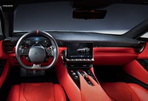 העיצוב אולי לא חושני ומעודן כמו האיטלקיות והגרמניות, אבל אי אפשר להתעלם מאגרסיביות והנוכחות של המכונית, תוך שהיא משלבת על גבי צללית נמוכה קלאסית עם חרטום ארוך וזנב קצר שלל אלמנטים חיוניים, כונסי אוויר, ספויילרים ומסיטי רוח לטובת יעילות אווירודינמית, קירור יעיל וכוח הצמדה מוגבר. מדובר במכונית גדולה יחסית, עם אורך של 482 ס"מ, רוחב של 2 מטרים ובסיס גלגלים של 272.5 ס"מ. תא הנוסעים גם הוא פונקציונלי בעיצובו, עם מנהרת הינע גבוהה המפרידה בין הנהג לנוסע, מסך מרכזי בלתי נמנע, אך עם שליטה באמצעות חוגות ומתגים על ההגה ובקונסולה המרכזית על כל הפונקציות החשובות לנהג, בפרט אלו השולטות על מצבי הנהיגה וכיול המתלים.