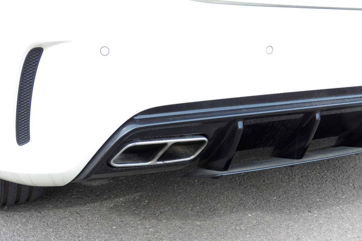 המכונית הלבנה שנמסרה לי לא מסגירה מיד את כל אלו. בצבע הזה היא לא ממש בולטת ומי שלא מאתר את כיתובי ה-AMG וה-45 עלול לטעות שעומד מולו משהו עם יכולה נמוכה יותר. רק אחרי מבט נוסף ובחינה עמוקה יותר מתגלים הסימנים. הדיפיוזר האחורי עם הכנף המשולבת בתוכו, הספוילר האחורי או הפגוש העמוק מלפנים. גם הדיסקים הגדולים שמציצים מתחת לחישוקים (350 מ"מ) מסגירים עם מה יש לנו עסק.