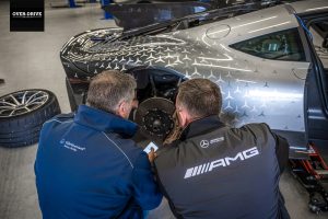 בנוסף ליחידת הכוח וההנעה הכפולה למרצדס יש עזרים אווירודינמיים שעוזרים לה לאחוז את האספלט טוב יותר בפניות ולהיות מהירה יותר בישורות. מארו אנגל, הנהג, ציין שהוא השתמש במצב ״רייס פלוס״ שיודע בין היתר להנמיך את המרכב ב-37 מ״מ ו-30 מ״מ קדימה ואחורה התאמה לטובת הצמדה נוספת לאספלט.