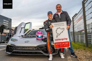 שיא ההקפה במסלול הנורבורגרינג נשבר שוב על-ידי מרצדס AMG ONE. מכונית העל החדשה של מרצדס עצרה את שעון העצר על זמן של 6:35.183 דקות – שיפור של 8 שניות ביחס לשיא הקודם אותו החזיקה פורשה 911 GT2 MR. בתנאים לא אידיאלים, משמע רטובים ומלוכלכים בחלק מהמסלול, הצליח מארו אנגל (אחד מנהגי המירוצים הרשמיים של מרצדס) לשבור את שיא ההקפה פעמיים למרות שהיו לו רק 4 הקפות לנסות זאת. ועתה המרצדס AMG ONE מחזיקה גם בשיא ההקפה למכונית סדרתית וגם בשיא ההקפה בקטגורית רכבי-על, למרות שהיא הראשונה לעשות זאת בקטגוריה.