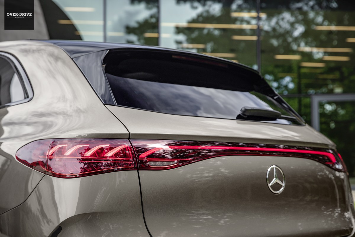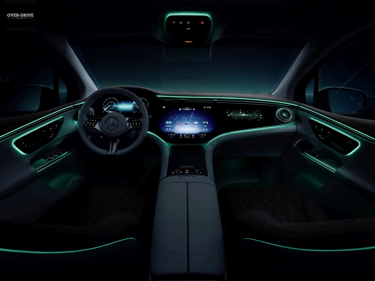 העיצוב שומר על קווים מעוגלים ואווירודנמיים ובמרצדס לא שכחו להצמיד גם כאן את החזית המוכרת של משפחת EQ, עם השבכה האטומה המושחרת והמרשימה לצד יחידות התאורה האופייניות. תא הנוסעים מציג גם הוא את הקו העדכני של מרצדס בתוספת ממשק MUBX העדכני המתבסס על מסך 12.3 אינץ לנהג ומסך מגע 12.8 אינץ' במרכז לוח המכשירים, אליהם מצטרפת תצוגת נתונים עילית צבעונית. כאופציה מוצע מסך ה-HyperScreen בגודל 141 ס"מ המתפרש על כל לוח המכשירים וכולל גם אופציות תפעול ובידור נפרדות מול הנוסע מלפנים.