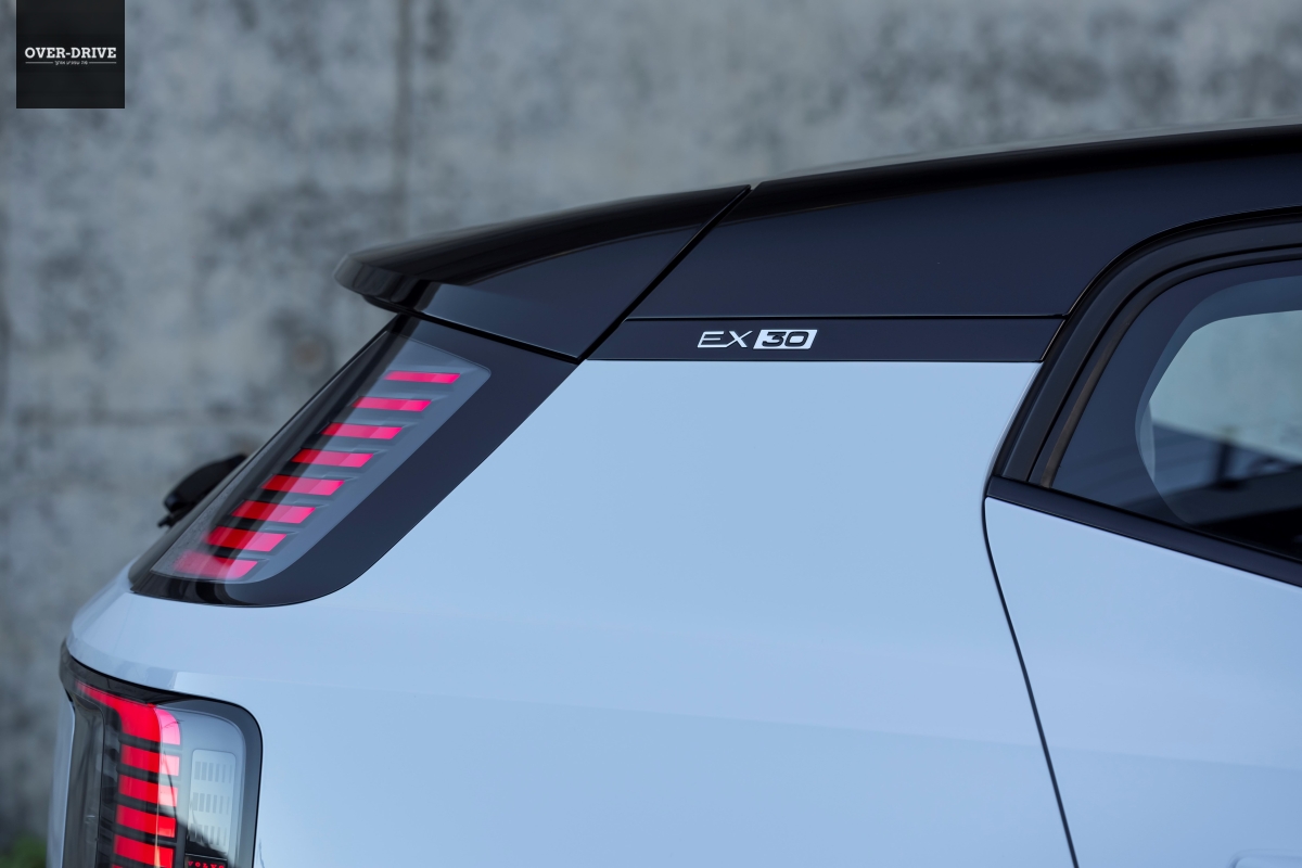 חזיתו של ה-EX30 מספקת משב רוח רענן בקו העיצובי של וולוו משום שהיא אינה כוללת את השבכה הקדמית המזוהה עם המותג שנים רבות. יש שיאהבו יותר ויש שיאהבו פחות אך אין ספק שהחזית החדשה מצריכה הסתגלות מסויימת. לצד הסמל שבחזית זוג יחידות תאורה המעוצבות בהשראת פטיש נורדי, כחלק מהקו העיצובי הנוכחי של החברה. מבט מהצד חושף חישוקי ענק בקוטר "20 בגרסה הבכירה בעיצוב ייחודי וקורה C רחבה הכוללת את שם הדגם. מראות הצד הותקנו במקום פחות שגרתי, והן מספקות ראות מצוינת לנהג. מאחור, יחידות התאורה זוכות לחיבור נאה ביניהן, שמדגיש את רוחבו של החלק התחתון, יחד עם עוד יחידות תאורה נפרדות על קורה C.
