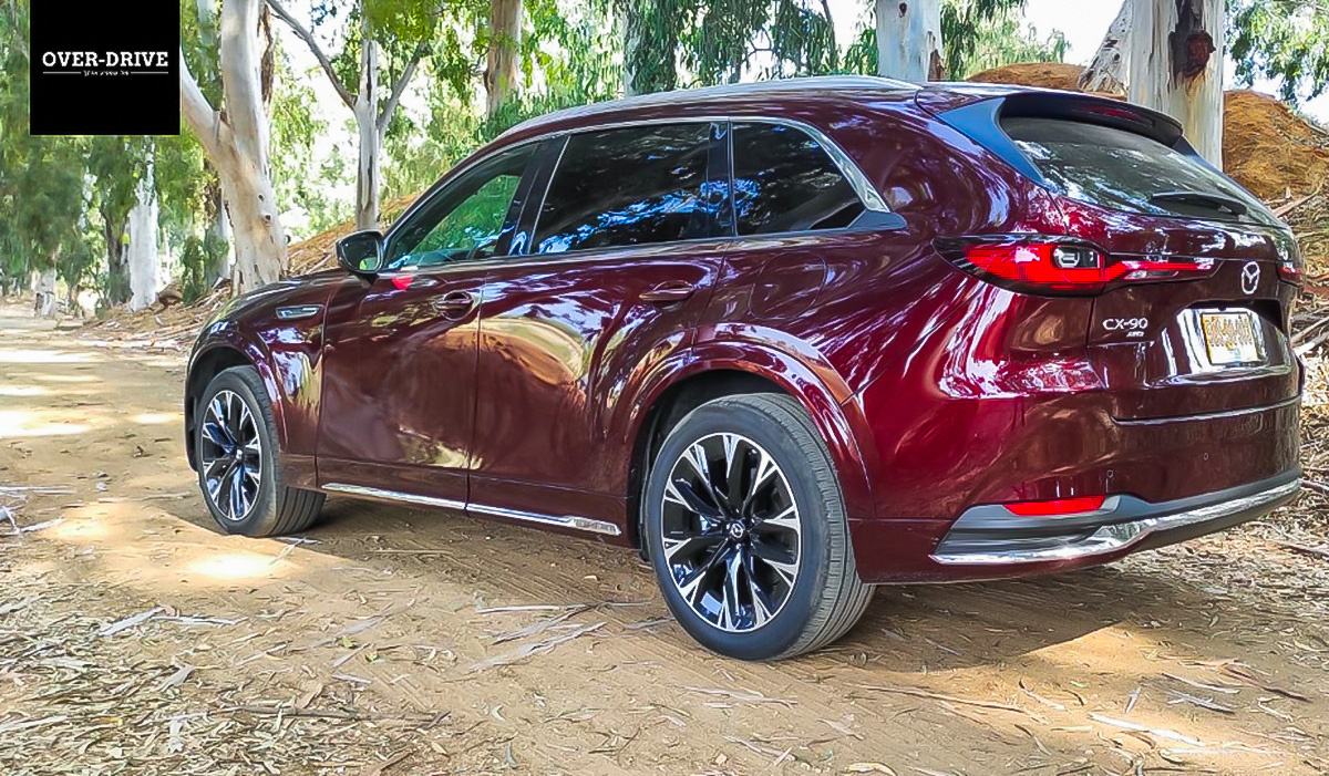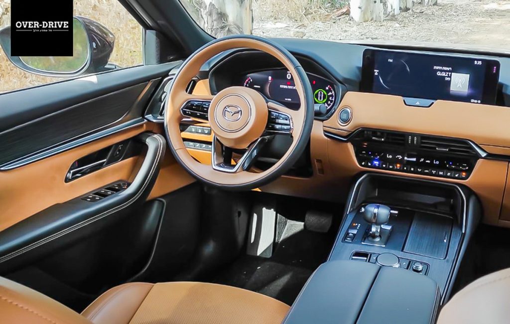 שנייה אחרי שמבינים שאנחנו עומדים מול מאזדה (שבנתה את מעמדה כאן כעממית סופר-נמכרת עד לא מזמן) שעולה 400,000 שקלים (מחיר של רכבי פרימיום מוכרים) ומבינים שיש כאן מציאות חדשה, אפשר להשתחרר מזה ולהתחיל להבין במה מדובר. הממדים אדירים יותר מחמישה מטרים לאורך, בסיס גלגלים של יותר משלושה מטרים וקצת פחות משני מטרים לרוחב, אבל מוצנעים היטב בתוך הקווים המעוגלים של הרכב הזה. כן הוא גדול, כן יש בו חלקי כרום נוצצים, אבל הוא לא נראה מוחצן או מצועצע.
